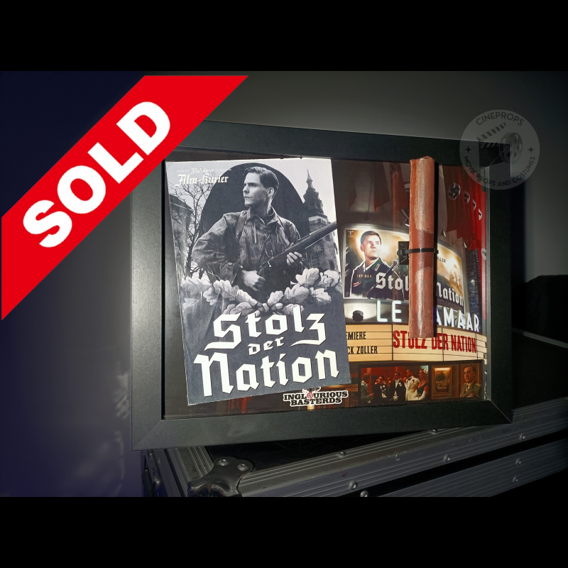 CineProps vous propose ce faux bâton de dynamite ainsi que ce programme réalisés pour la scène finale explosive du film Inglourious Basterds, réalisé par Quentin Tarantino en 2009. Deux props pour un package rare. Un must have !